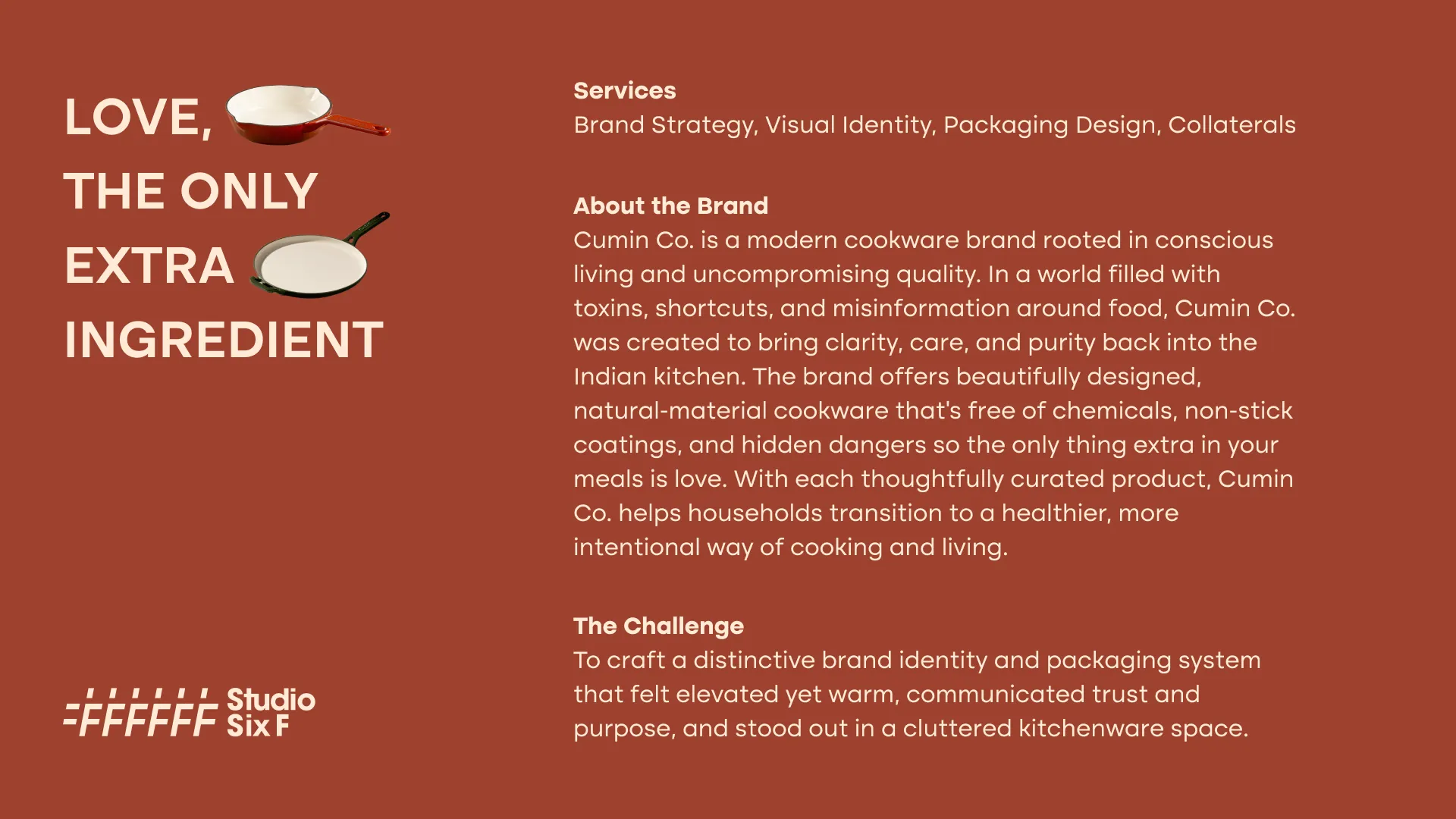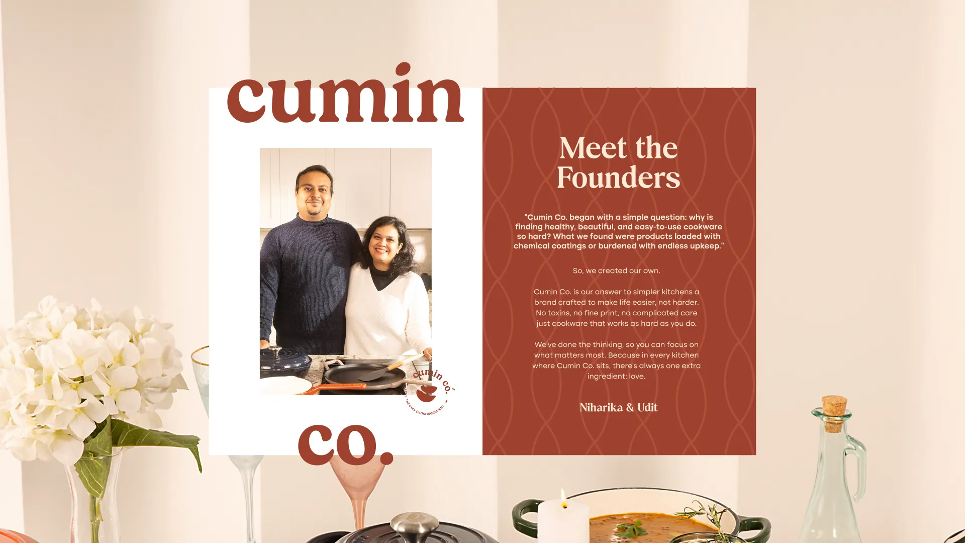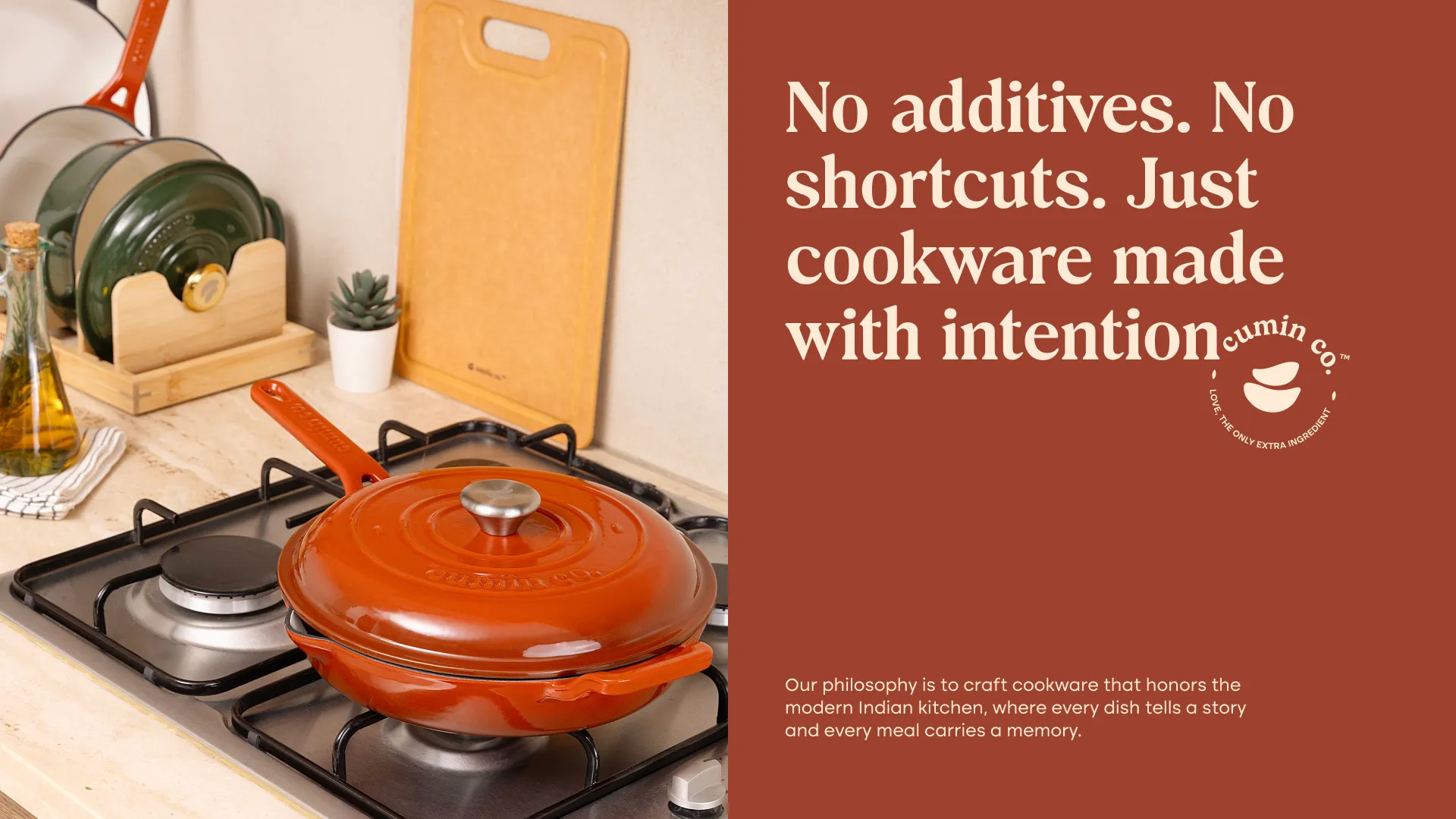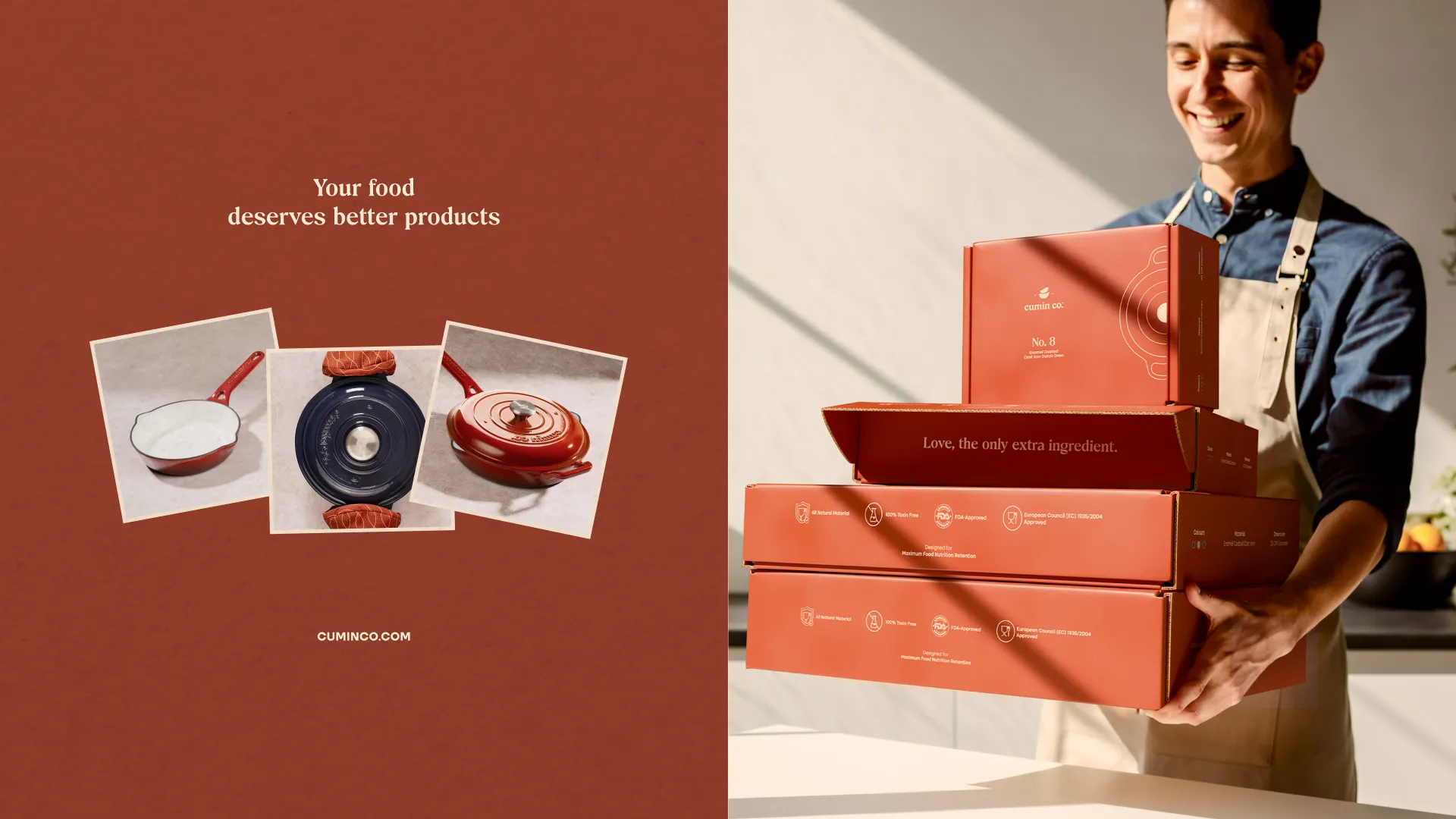 In a market dominated by sleek, synthetic cookware, Cumin Co. wanted to stand for something more grounded, products that feel human, not industrial. The challenge was to communicate trust and purity while maintaining a modern aesthetic that fits today’s kitchens and lifestyles.